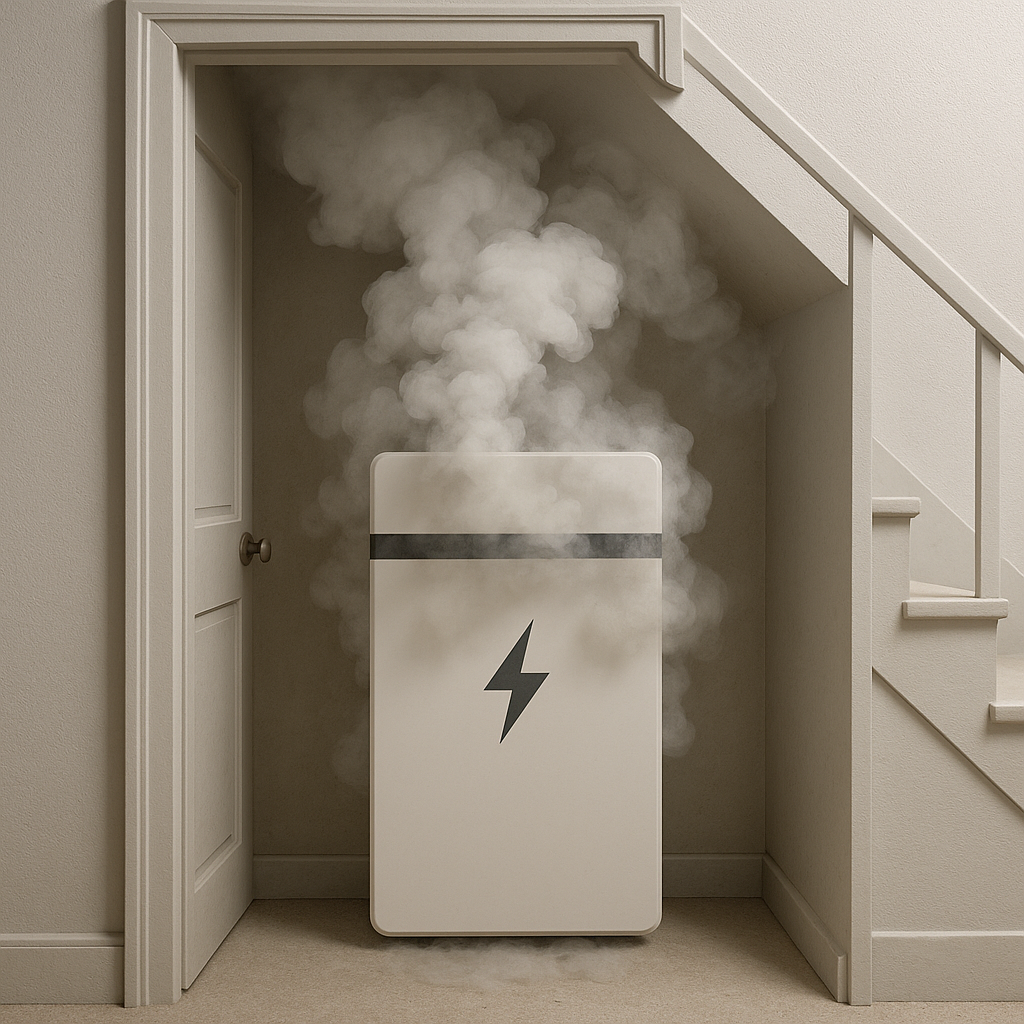 Maar er is één ontwikkeling die ik als inspecteur steeds vaker zie en die bijzonder zorgwekkend is: thuisaccu’s die worden geplaatst in ruimtes die daar absoluut niet voor geschikt zijn — trapkasten, bergingen, slaapkamers of gangen.